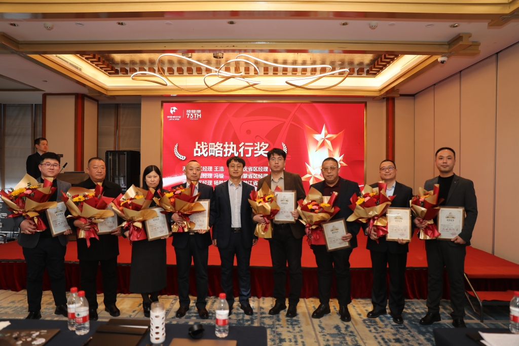 大會對2024年表現優異的省區經理、招商經理、終端經理予以表彰,先后頒發了“創新突破獎”、“業績先鋒獎”、“區域開拓獎”、“精益管理獎”、“戰略執行獎”以及“年度風云人物獎”6個獎項,每一個獎項背后都凝聚著堅守與奮斗,在過去一年中,他們在市場拓展、團隊建設、戰略落地、目標達成、業務發展等方面表現優異。當獲獎者在領導手中接過鮮花和證書時,會場響起陣陣熱烈的掌聲——這是對奮斗者最好的禮贊。